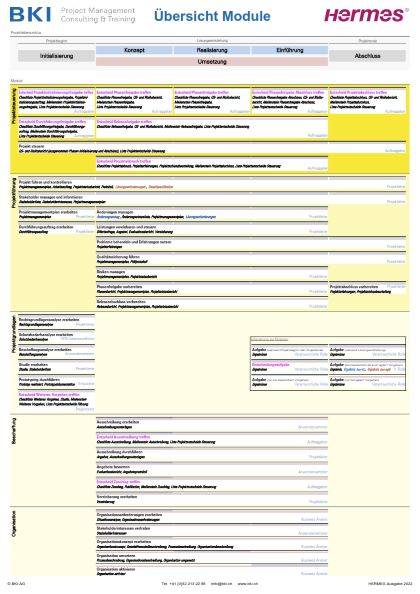 Das ideale Hilfsmittel für die Prüfungsvorbereitung zur HERMES Zertifizierung. Alle Phasen, Module, Aufgaben, Ergebnisse und Rollen zusammengefasst.